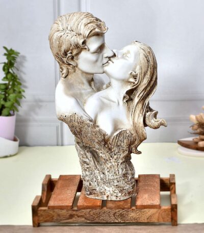 White Brown Polyresin Man and Woman Kissing Statue, Romantic Kissing Couple Figurine - Elegant Home Decor - Gift for Girlfriend, Boyfriend, Husband, Wife on Anniversary, Valentine's Day