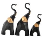 Golden-Eared Elephant Charm Set of 3 Black & Gold Poly Resin Statues in Varying Sizes, All Looking Up – Home D?cor